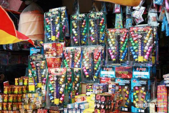 Petasan aneka jenis juga dijajakan di Pasar Asemka, Jakarta.